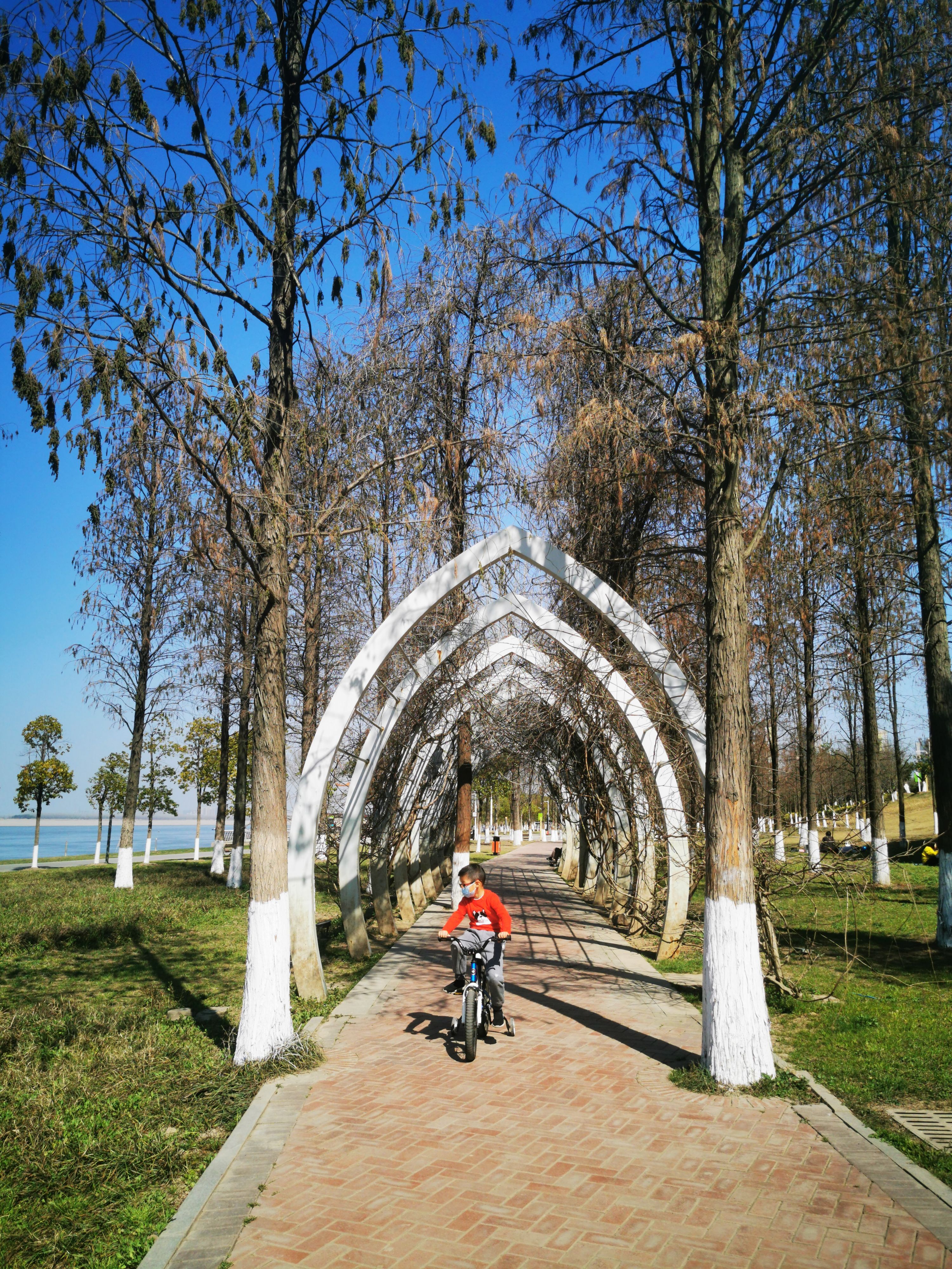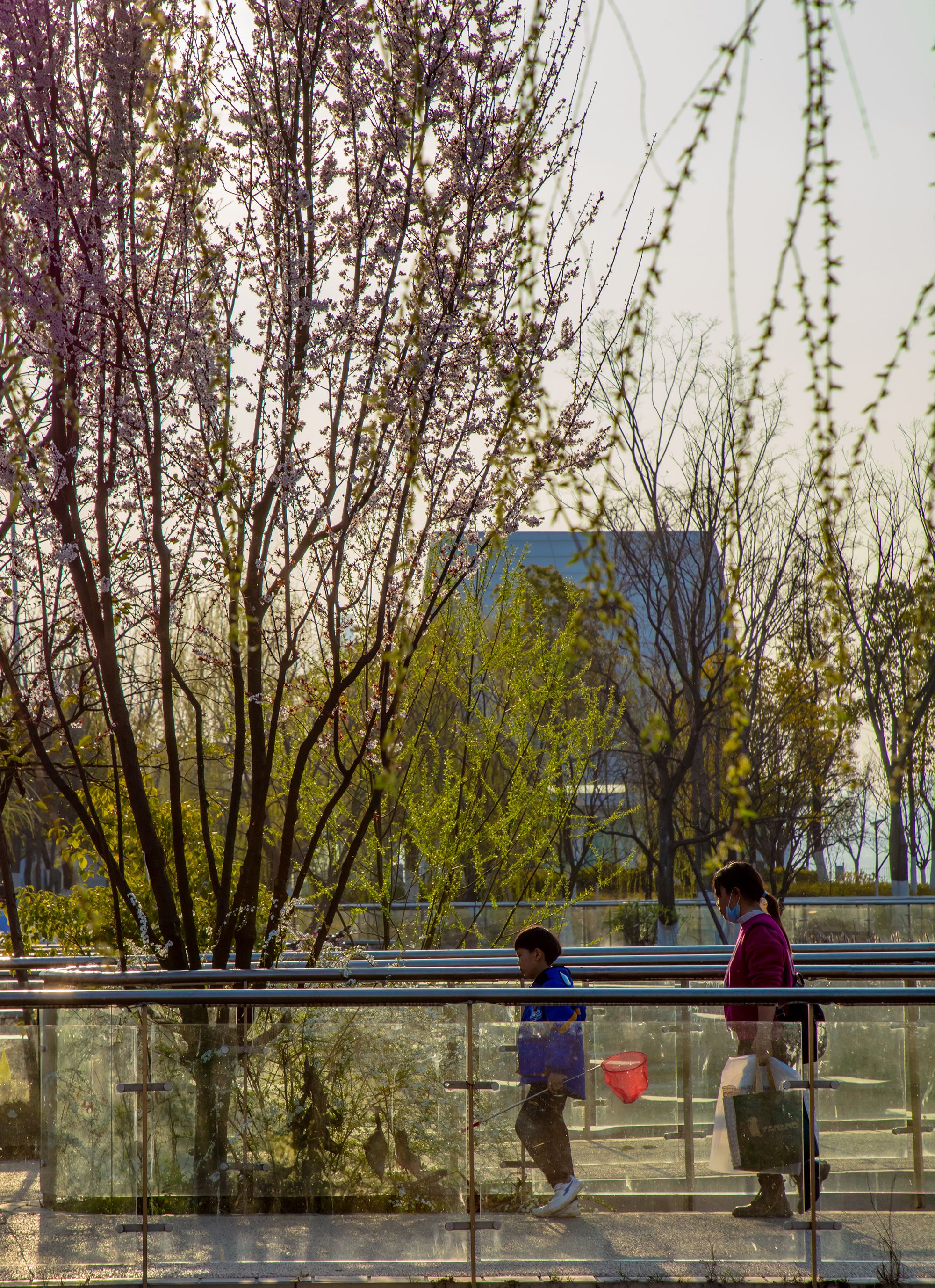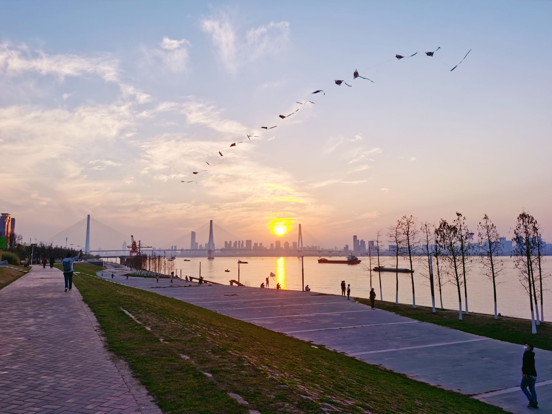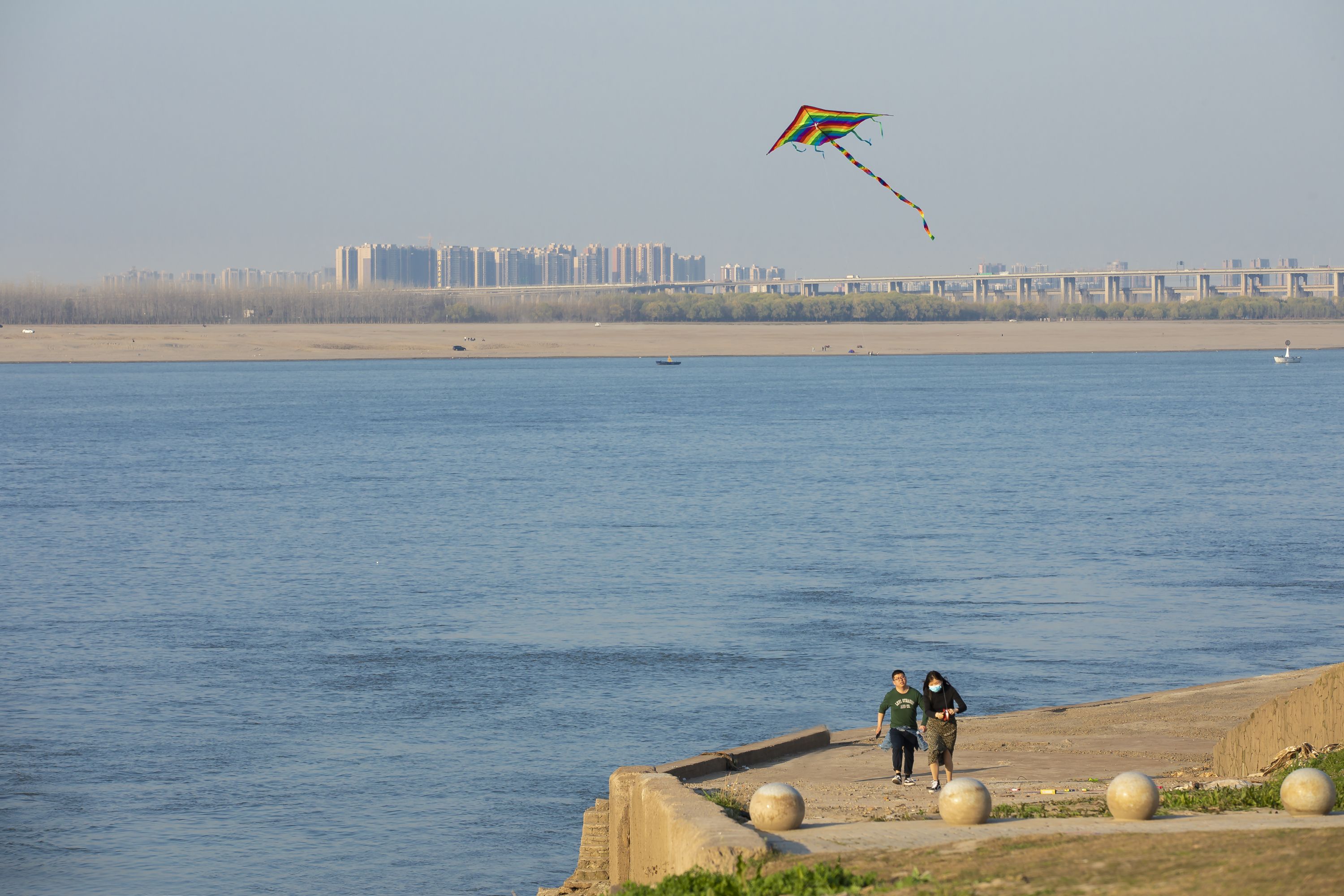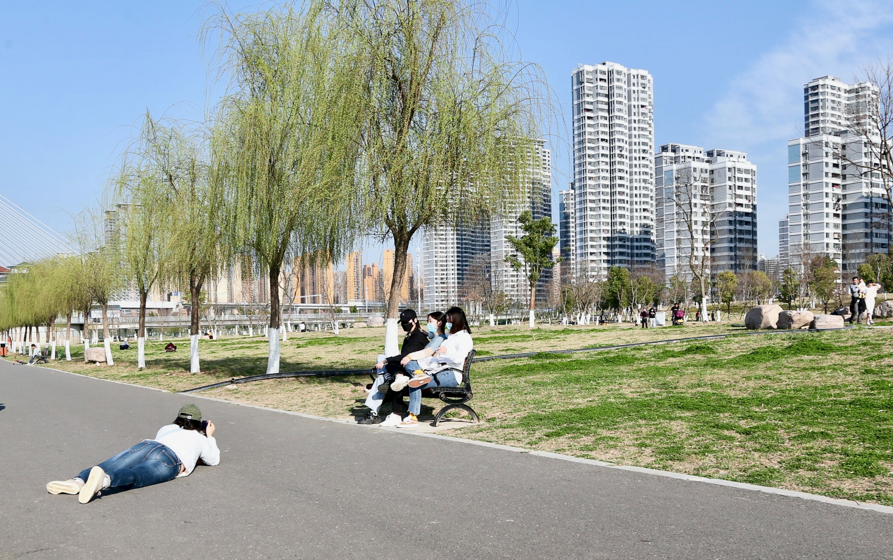 “风姿”就住在青山江滩附近,这里是他的常驻拍照地,春暖花开、秋叶泛红时,他都会来拍照记录。青山江滩公园里有大面积的草坪、绿植鲜花,二七长江大桥跨过江滩,江水、大桥、公园与中式古典建筑相互映衬,显得多姿多彩。