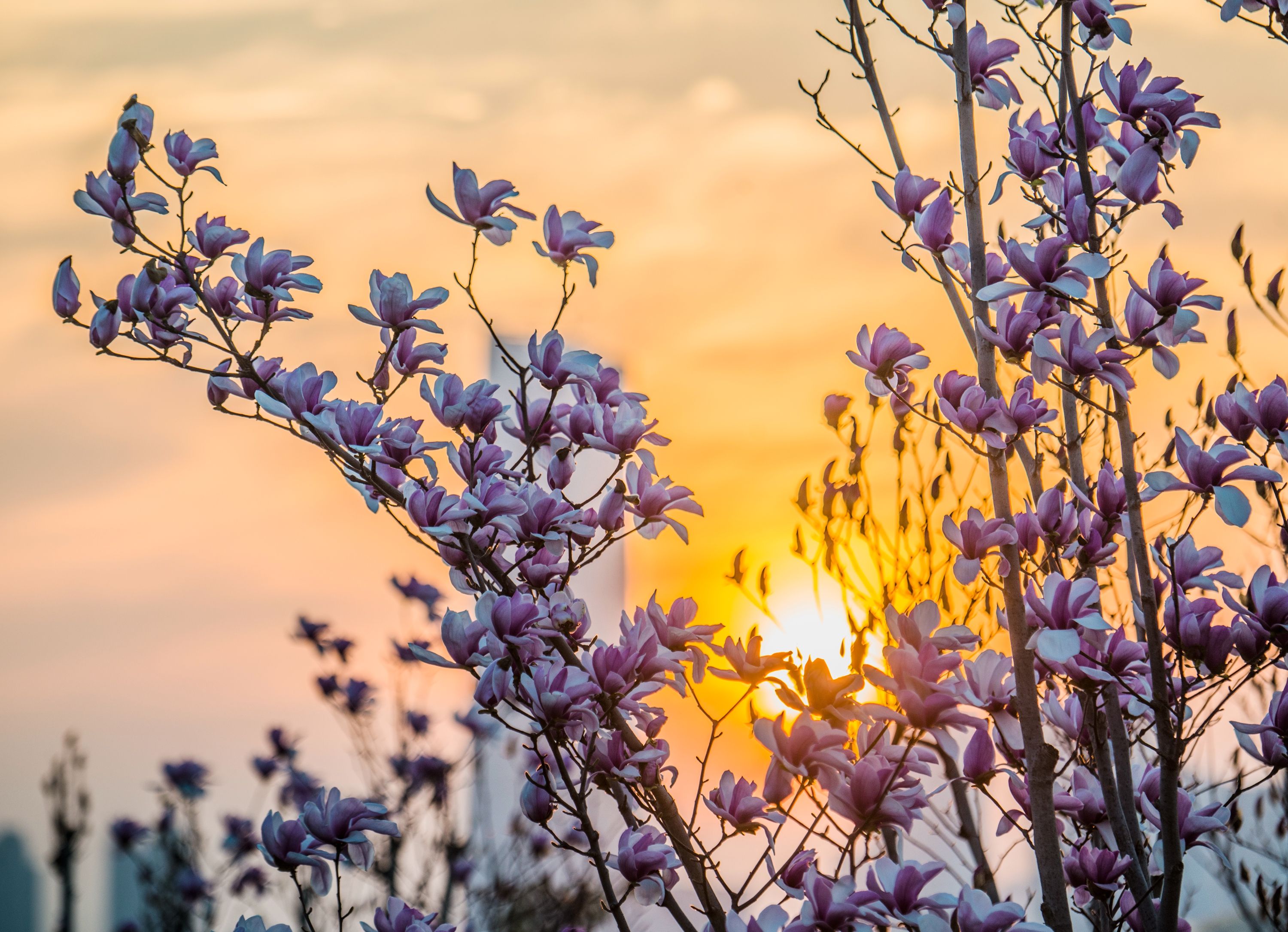 二七长江大桥在盛开的玉兰花映衬下,格外壮美。城市摄影队赵广亮 摄