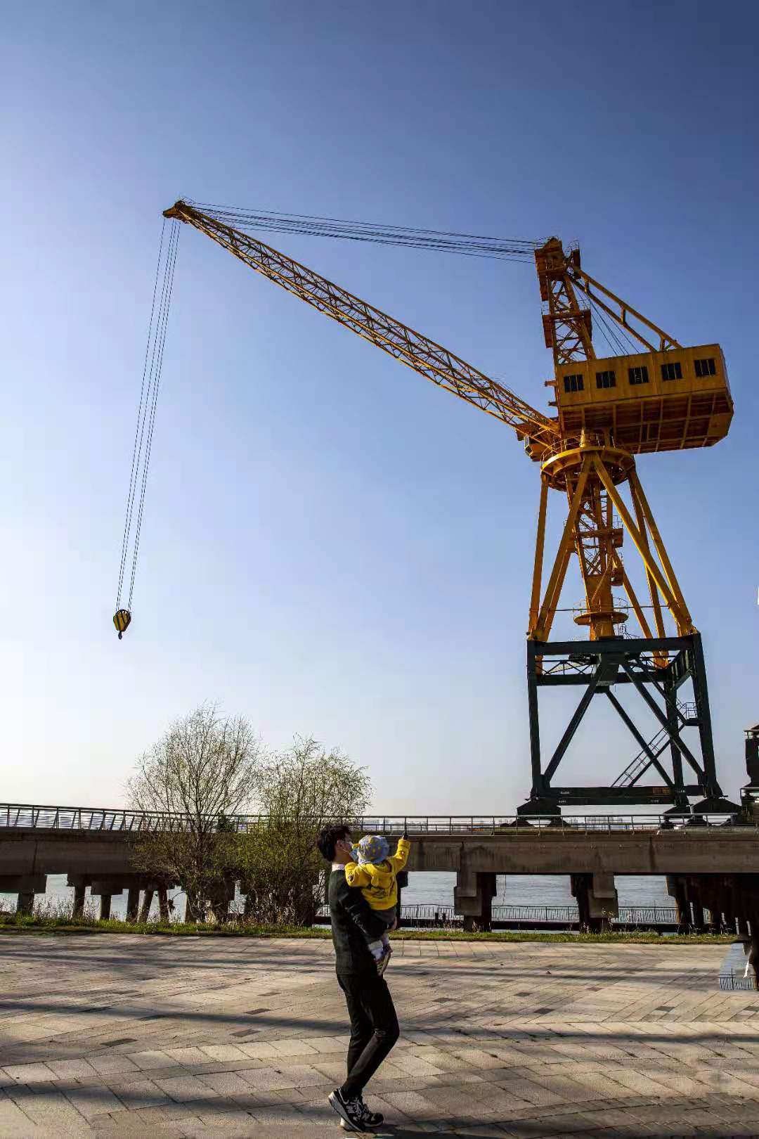 有摄影师在微信群里互动留言,“青山江滩一处一景,非常好看,几十米高的大吊机极具特色,是青山江滩的灵魂所在。”