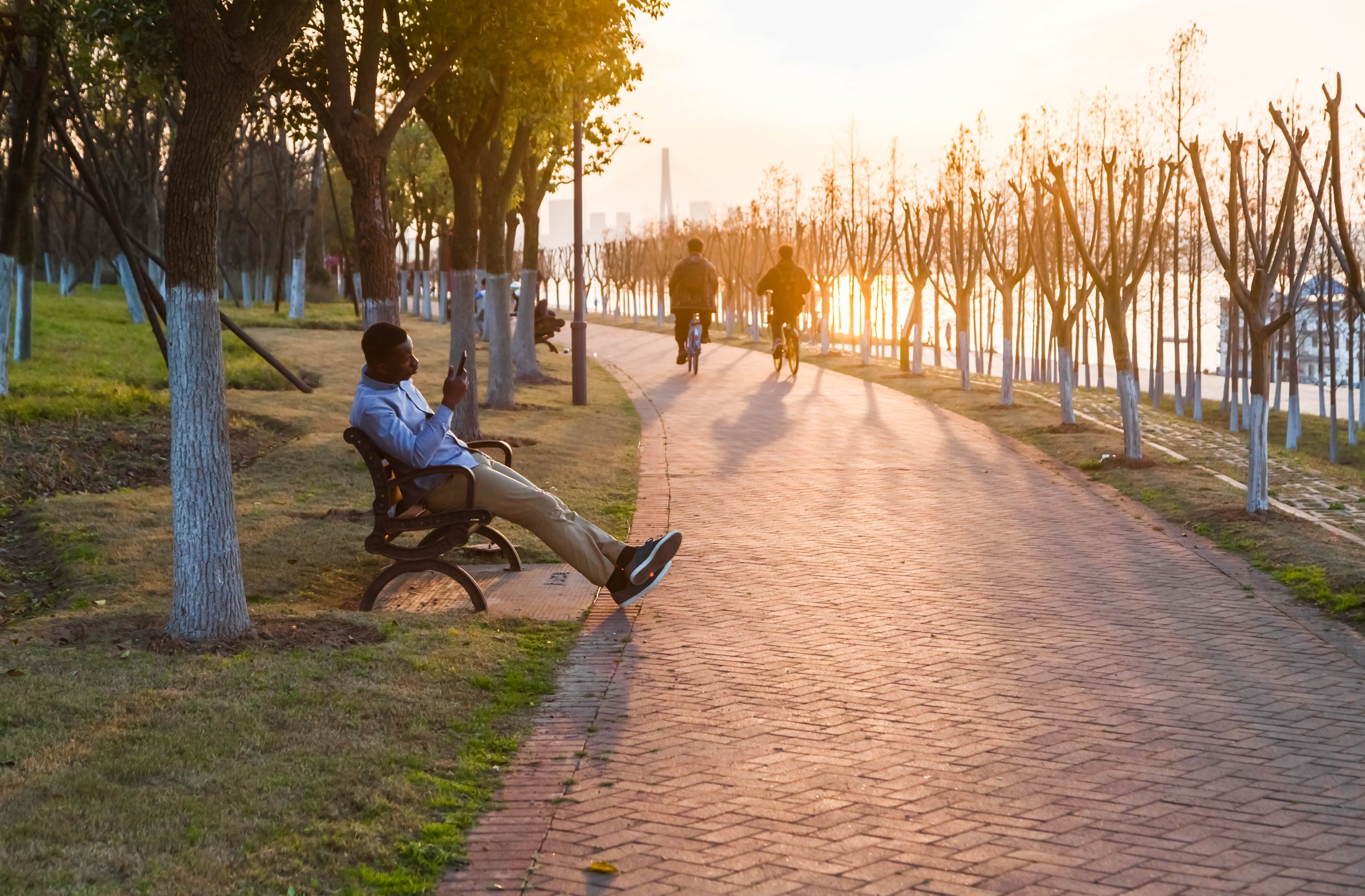 等到夕阳西下时,青山江滩一改白天的明艳,变成了一名温婉的女子,暖黄色调更加楚楚动人,漂亮的晚霞染红江面和天空,在江滩漫步,在落日余晖下的游人,感受着青山江滩的美。