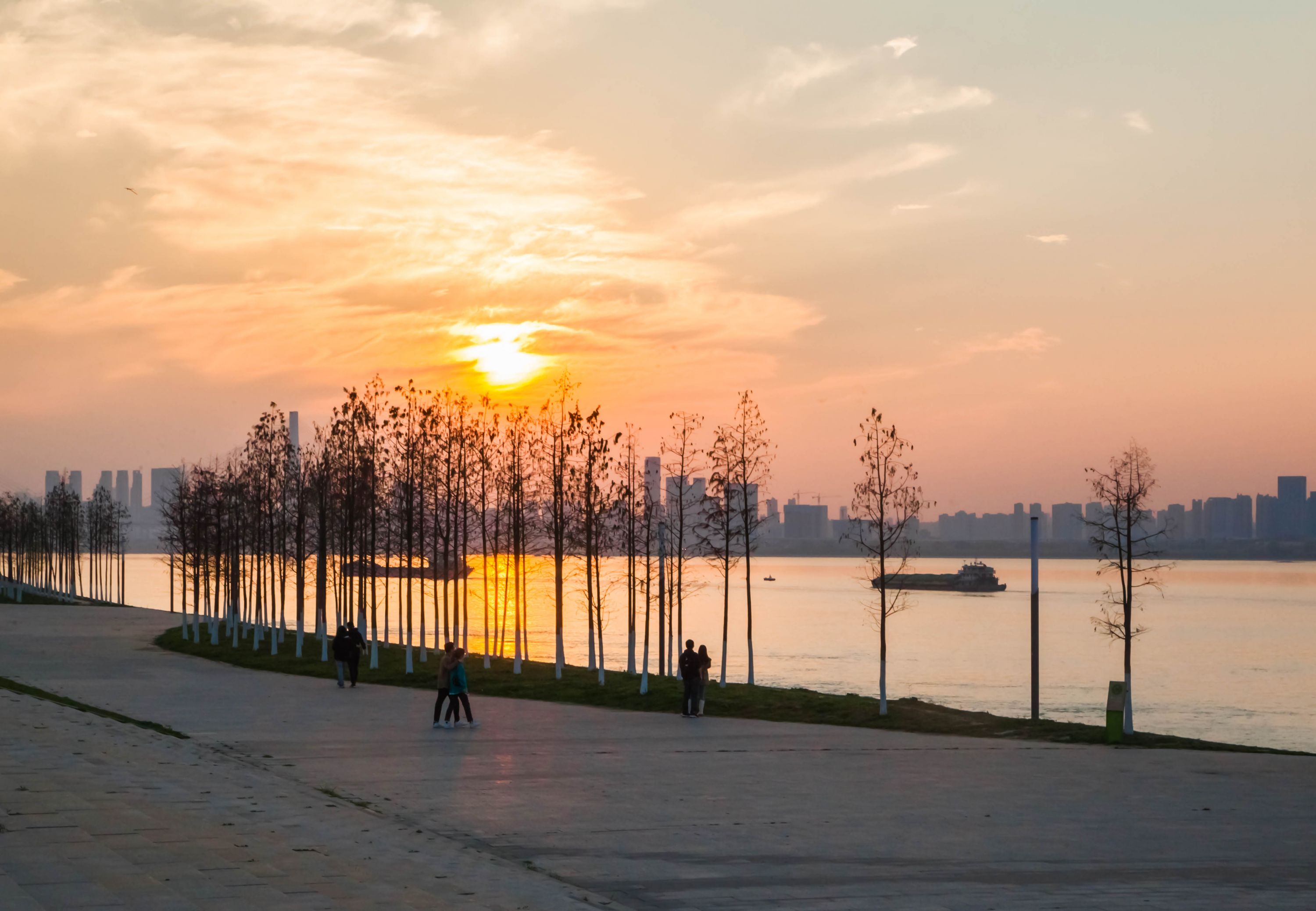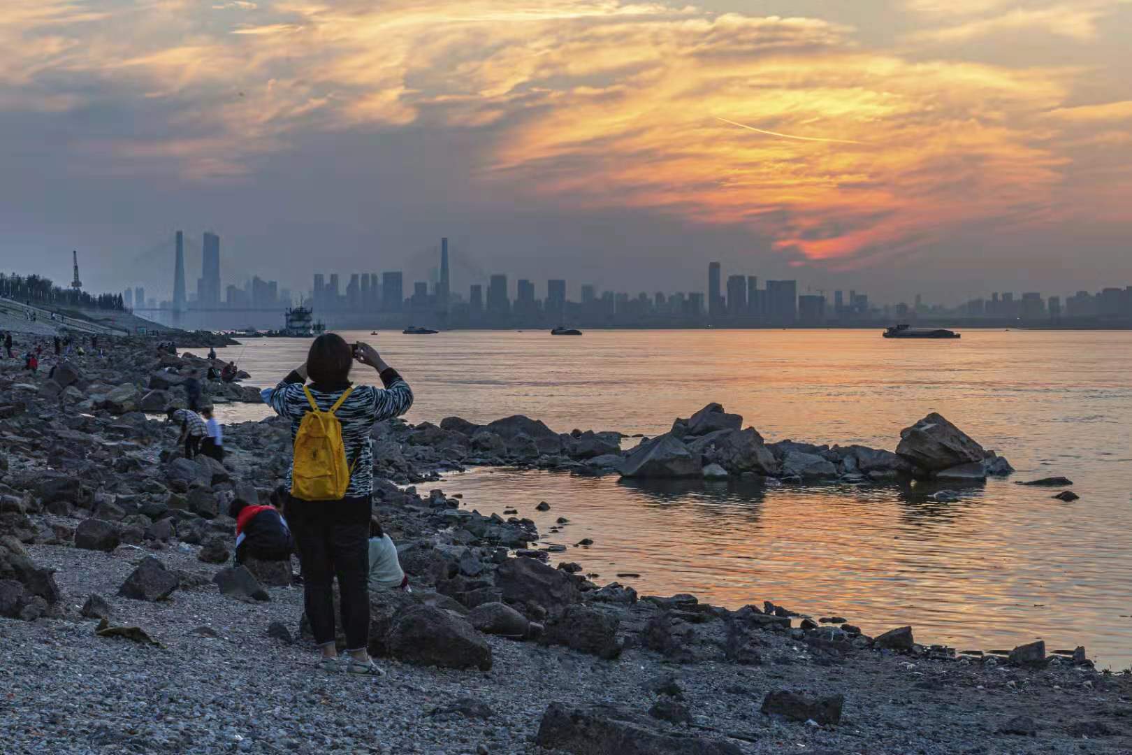 夕阳余晖下江滩更美了