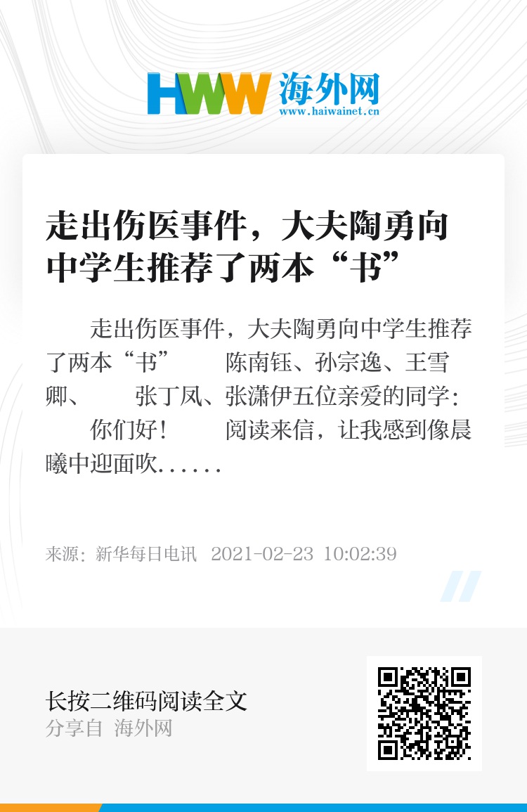 走出伤医事件,大夫陶勇向中学生推荐了两本“书”