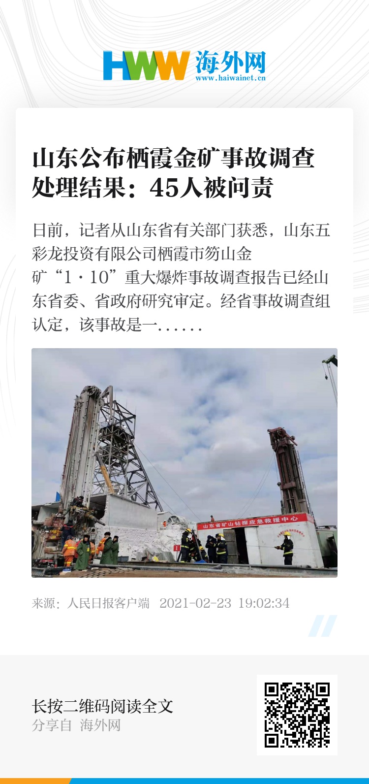 同时,山东五彩龙投资有限公司法定代表人贾巧遇和时任栖霞市委书记姚秀霞,市委副书记、市长朱涛,因负有迟报瞒报事故责任,目前由公安机关立案侦查。