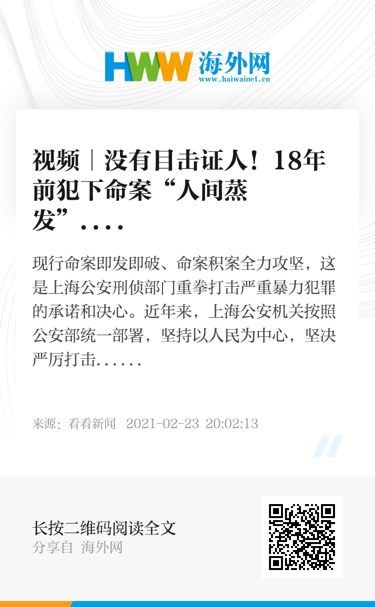日前,上海浦东警方依托智慧公安赋能,充分运用现代科技的最新成果和公安大数据建设的最新成效,成功侦破18年前发生在浦东上钢新村地区的一起命案,将犯罪嫌疑人捉拿归案。