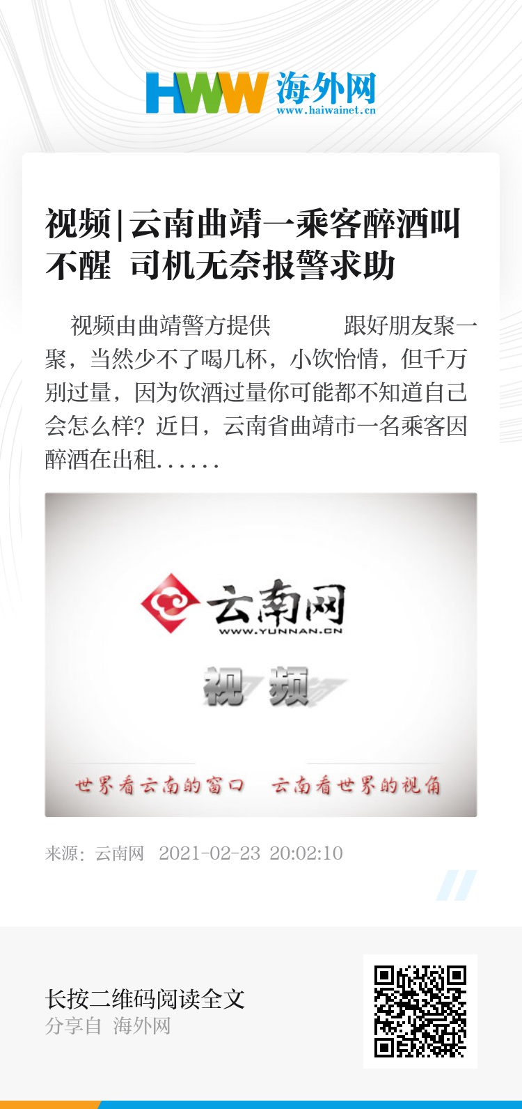 2月20日凌晨2时44分,曲靖市经开警方接到一名出租车司机报警称:一醉酒男子在出租车上睡着,怎么叫都叫不醒。