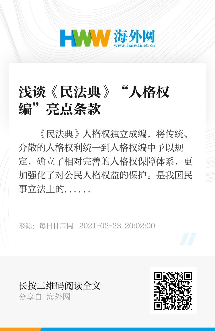 《民法典》人格权独立成编,将传统、分散的人格权利统一到人格权编中予以规定,确立了相对完善的人格权保障体系,更加强化了对公民人格权益的保护。是我国民事立法上的重大创新,具有里程碑式的意义,体现了《民法典》以人为本的价值理念。