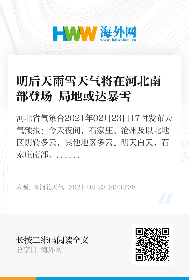 河北省气象台2021年02月23日17时发布天气预报: