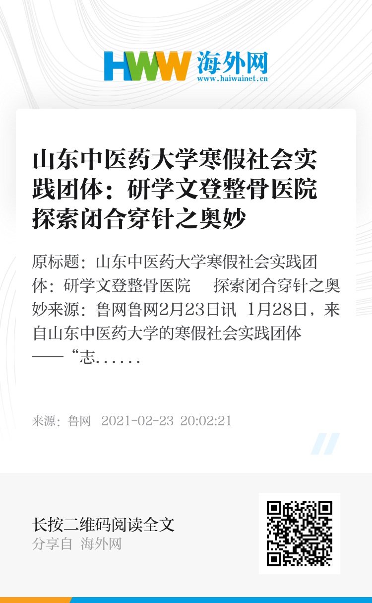 原标题:山东中医药大学寒假社会实践团体:研学文登整骨医院 探索闭合穿针之奥妙