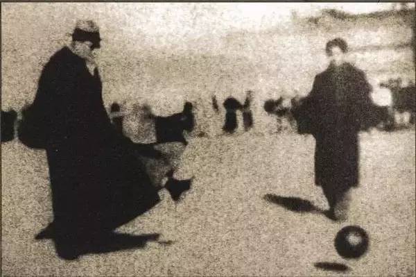 ▲张伯苓为学生足球比赛开球