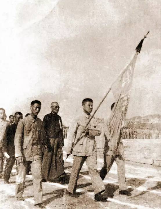 ▲张伯苓参加校运动会开幕式,走在队伍前面