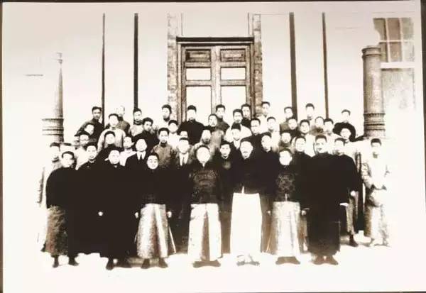 ▲张伯苓(前排右一)与南开大学矿科创办人李组绅等