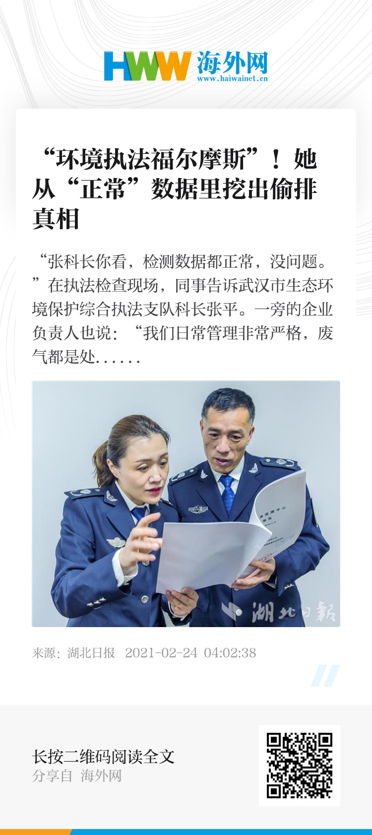 “虽然身材娇小,可她在现场从来不怕脏,不怕苦,更不怕被威胁,很多企业后来知道她的厉害,再也不敢在排污上做手脚了。”同事多年,武汉市生态环境保护综合执法支队一级主任科员谌政辉这样评价张平。