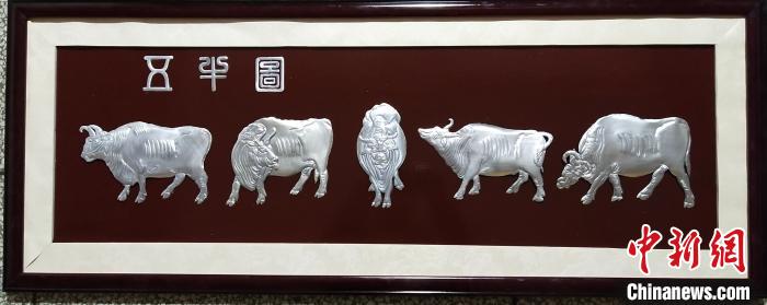 《迎客松》《岁寒三友》《仕女图》……陈惠家的客厅里到处都是精美的易拉罐浮雕画。为了庆祝牛年春节,他更是用自己擅长的易拉罐剪贴艺术,创作出《五牛图》《农耕图》《牧童遥指杏花村》等具有牛元素的浮雕画。