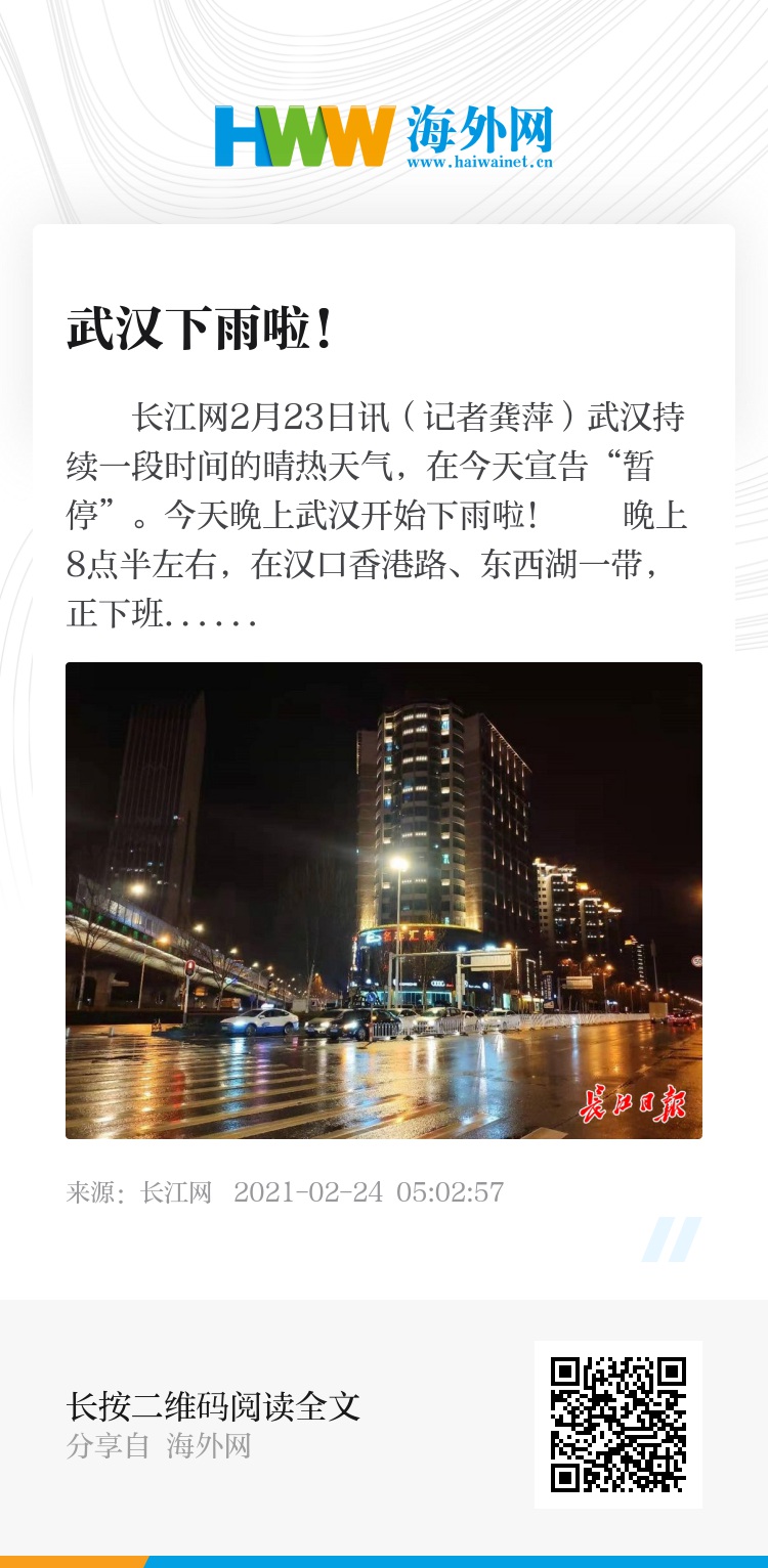长江网2月23日讯(记者龚萍)武汉持续一段时间的晴热天气,在今天宣告“暂停”。今天晚上武汉开始下雨啦!