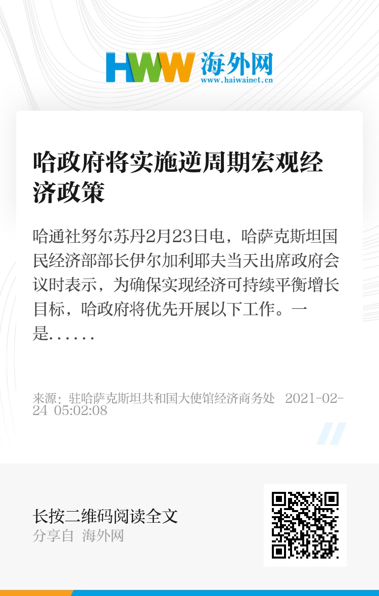 伊表示,政府将通过开发农工综合体潜能、推进工业化和高质量数字化等途径,采用间接支持机制,促进高效企业发展,实现经济多元化目标。为启动新一轮投资周期,在目标引资机制框架下,政府将与价值链不同阶段的资本持有方直接对接;实施积极主动的外贸政策,实现国际收支平衡。(驻哈萨克斯坦使馆经商处)