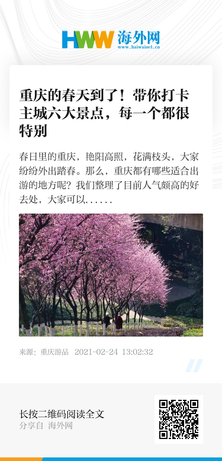 原标题:重庆的春天到了!带你打卡主城六大景点,每一个都很特别
