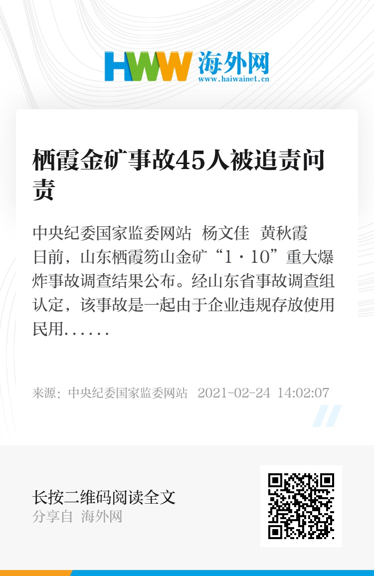 日前,山东栖霞笏山金矿“1·10”重大爆炸事故调查结果公布。经山东省事故调查组认定,该事故是一起由于企业违规存放使用民用爆炸物品和井口违规动火作业引发的重大生产安全责任事故。