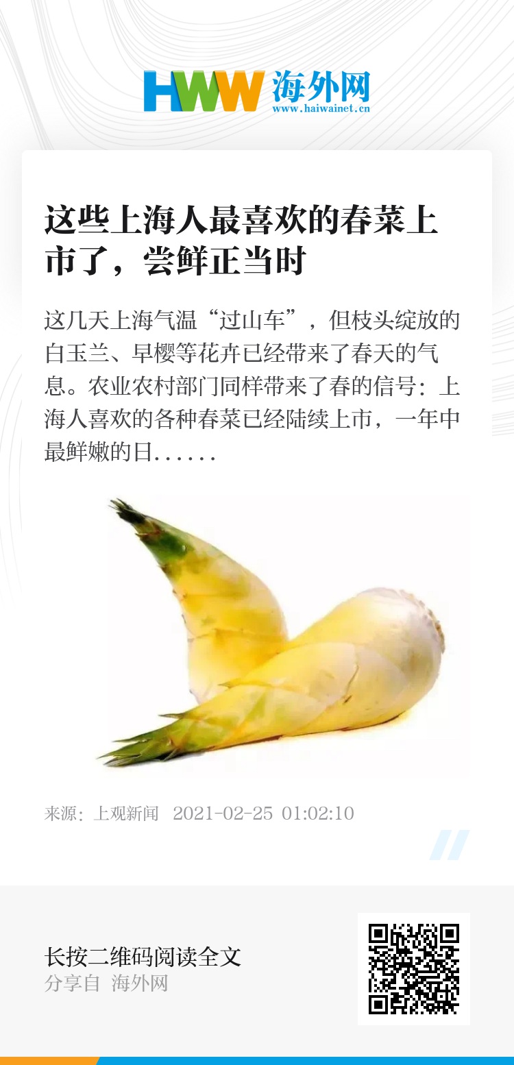 这几天上海气温“过山车”,但枝头绽放的白玉兰、早樱等花卉已经带来了春天的气息。农业农村部门同样带来了春的信号:上海人喜欢的各种春菜已经陆续上市,一年中最鲜嫩的日子来了。