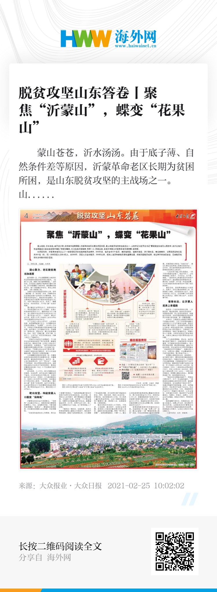 蒙山苍苍,沂水汤汤。由于底子薄、自然条件差等原因,沂蒙革命老区长期为贫困所困,是山东脱贫攻坚的主战场之一。山东牢记习近平总书记“要紧紧拉住老区人民的手,决不让他们在全面建成小康社会进程中掉队”的殷切嘱托,大力弘扬沂蒙精神,党群一心、尽锐出战,多措并举助力沂蒙革命老区摘穷帽、拔穷根。