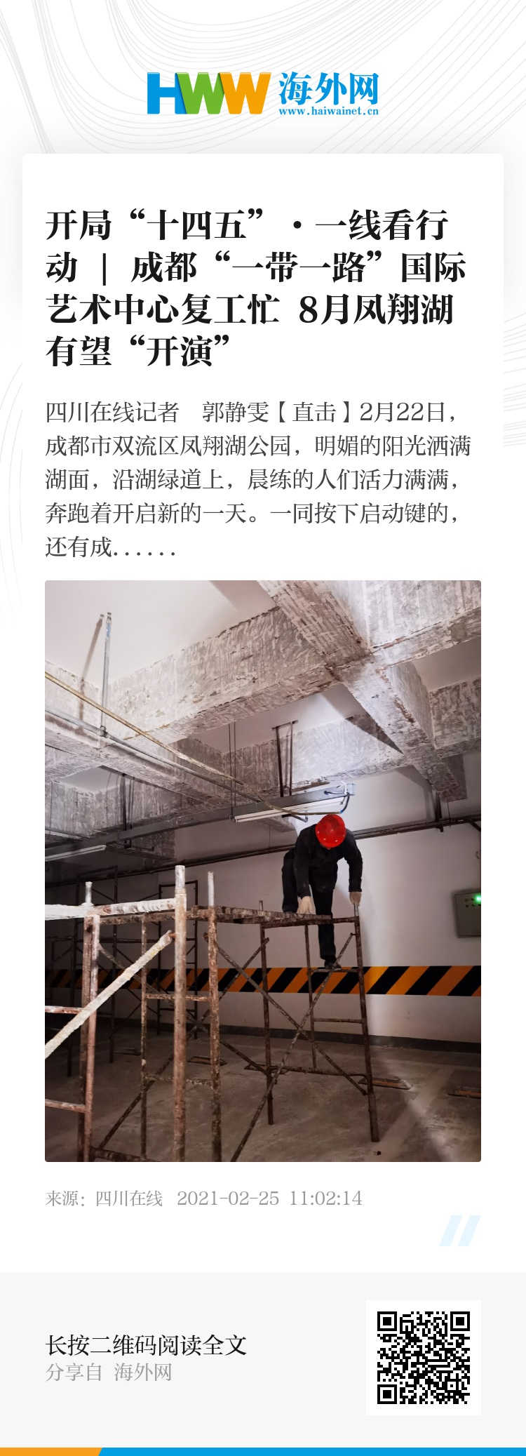 一同按下启动键的,还有成都“一带一路”国际艺术中心暨凤翔湖音乐创意公园项目。8时30分,凤翔湖西南侧一栋标号为16号的两层建筑施工围墙入口,返岗的工人准时到场。