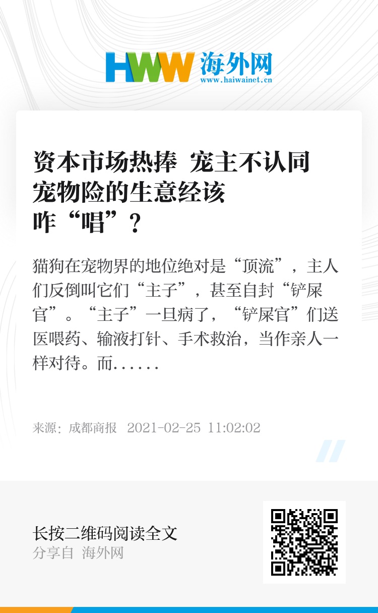 猫狗在宠物界的地位绝对是“顶流”,主人们反倒叫它们“主子”,甚至自封“铲屎官”。“主子”一旦病了,“铲屎官”们送医喂药、输液打针、手术救治,当作亲人一样对待。而老谋深算的保险行业、嗅觉敏锐的互联网企业,也感知到“主子”身上的“钱途”,深入宠物保险这片蓝海。