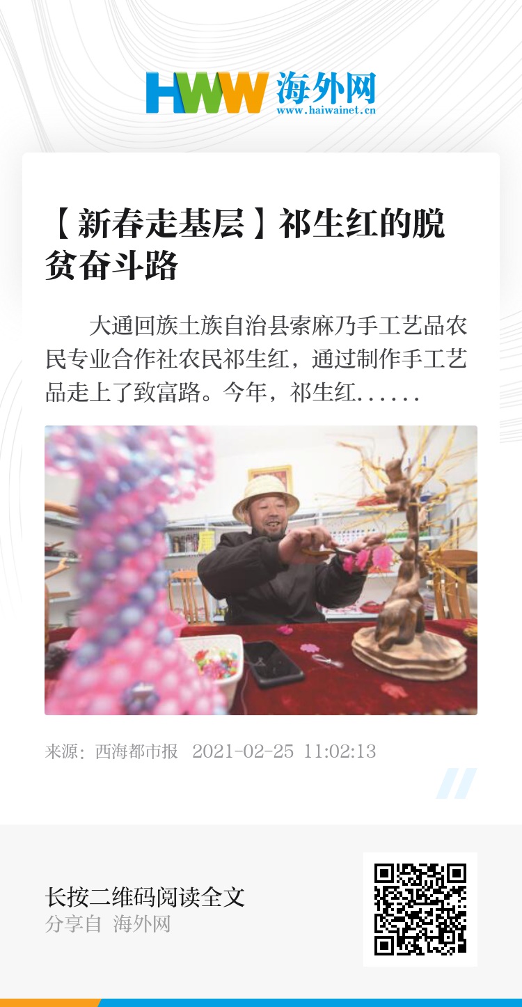 青海新闻网·大美青海客户端讯 2月24日,52岁的祁生红坐着轮椅,前往村委会附近的工作室。
