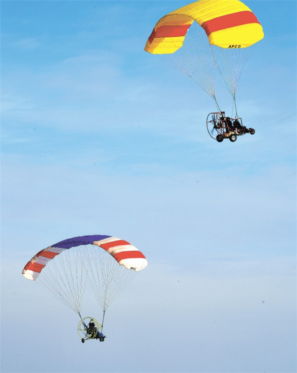 网友刘洋:昨天闲逛一湖三岛,偶然看到一群动力伞爱好者在飞行。当时气温可能有-20℃,这些伞友展开彩色伞翼,翱翔于蓝天白云间,还时不时来个一起飞的场景,与皑皑白雪相对,真是很搭。