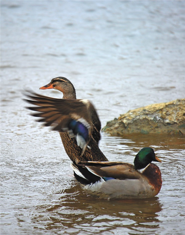 冰城人喜欢听雪落的声,那种空灵而清澈之声。冰与冷是“姐妹”,但是,冬日的江面,给人的感觉不是一片肃杀、一片荒凉,而是一种惊艳。沙画画家在冰面上绘出大锦鲤,鱼儿鱼儿在冰水中“游”。初显开化的水面上,“留守”的候鸟又添上了灵动的色彩。这些“小精灵”,时而蓝天里翱翔着,时而水面上游弋着。这虽不是旖旎的风光,却是大自然用冬日的语言讲述平淡中的一份深邃。
