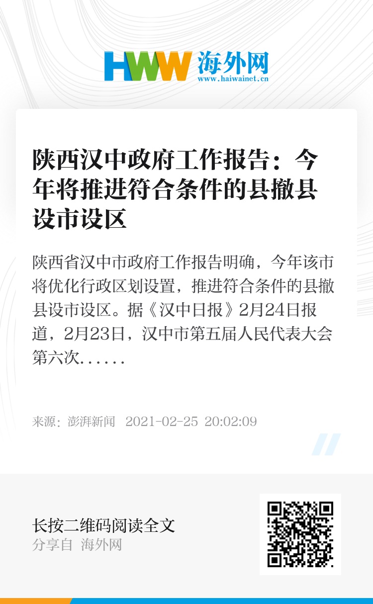31996505,.陕西汉中政府工作报告:今年将推进符合条件的县撤县设市设区,.2021-02-25 20:39:09,.3139,.海闻