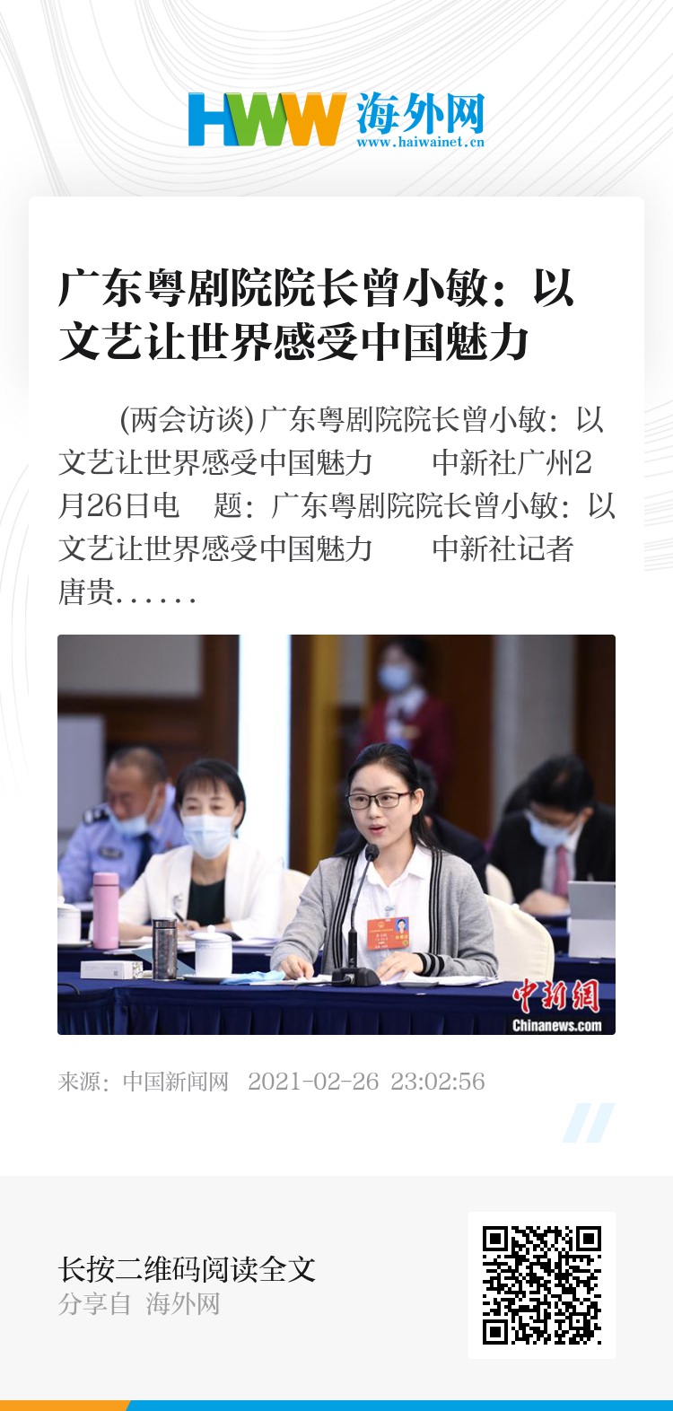 (两会访谈)广东粤剧院院长曾小敏:以文艺让世界感受中国魅力