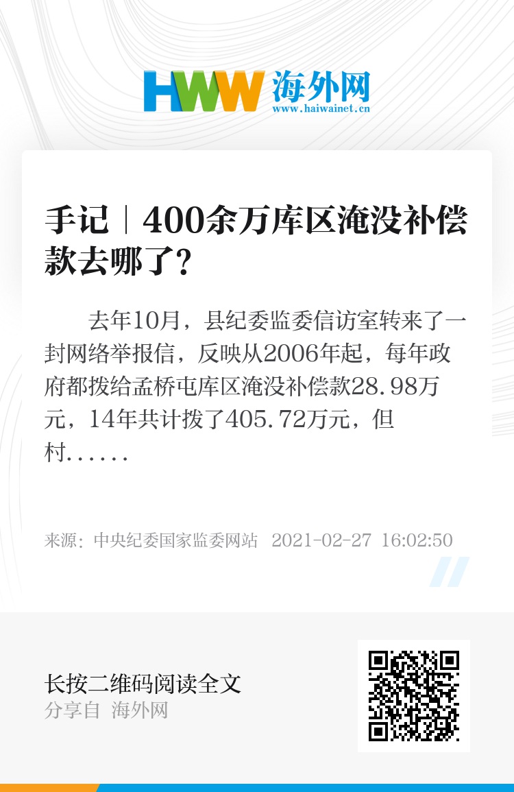 去年10月,县纪委监委信访室转来了一封网络举报信,反映从2006年起,每年政府都拨给孟桥屯库区淹没补偿款28.98万元,14年共计拨了405.72万元,但村民从未得到一分钱。
