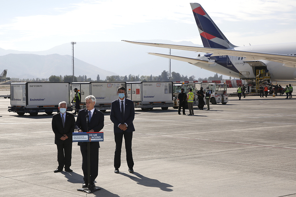 智利总统皮涅拉赴机场迎接第三批中国新冠疫苗