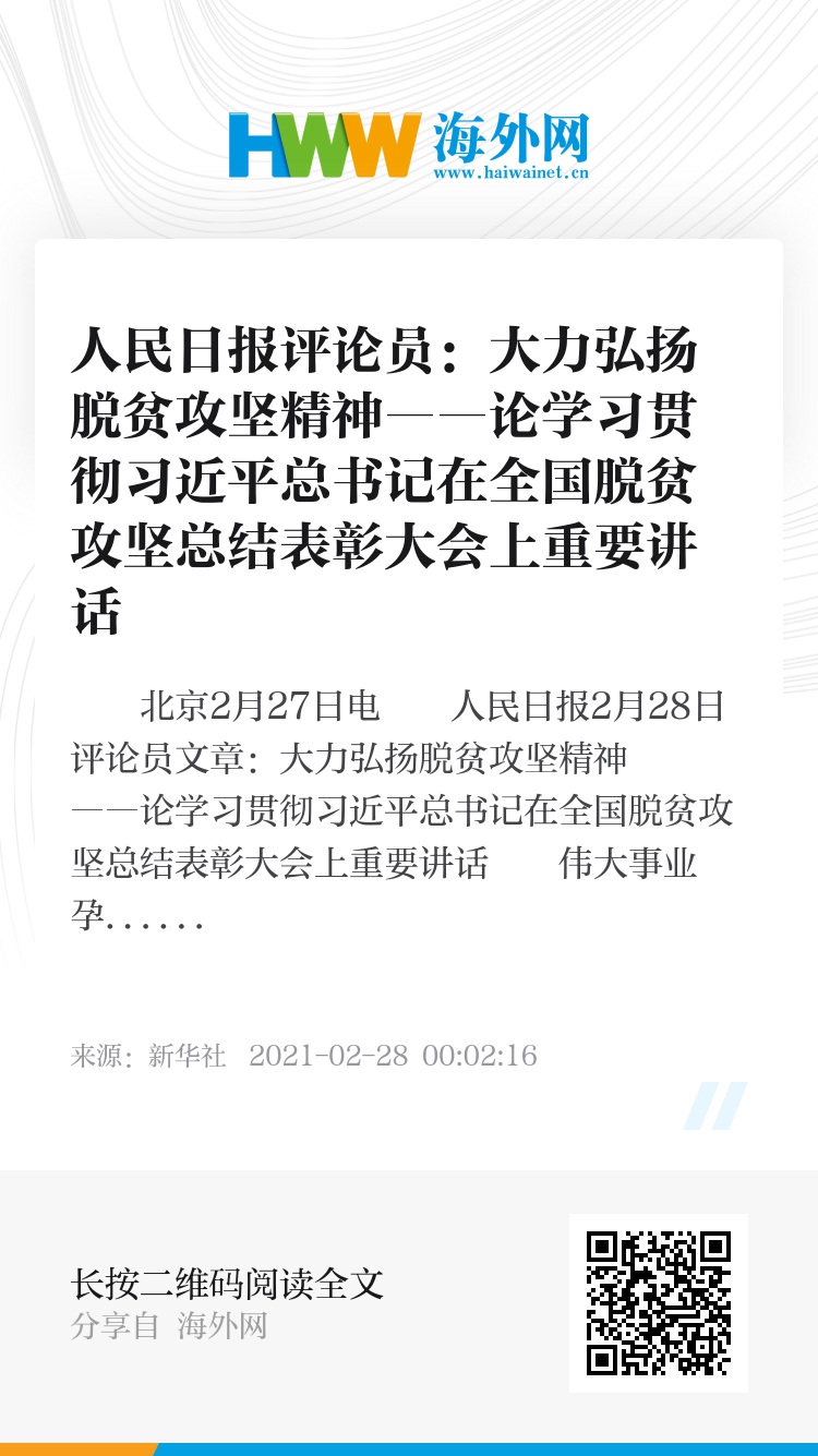 人民日报2月28日评论员文章:大力弘扬脱贫攻坚精神