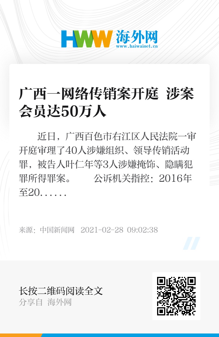近日,广西百色市右江区人民法院一审开庭审理了40人涉嫌组织、领导传销活动罪,被告人叶仁年等3人涉嫌掩饰、隐瞒犯罪所得罪案。