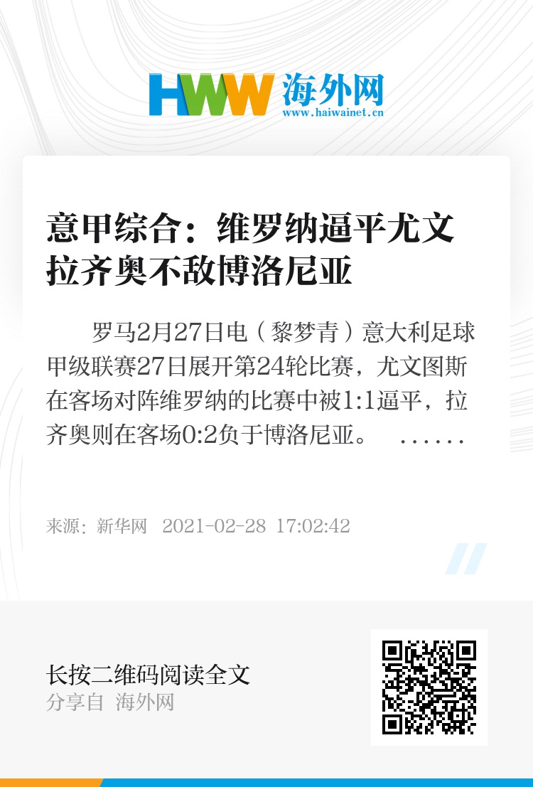 新华社罗马2月27日电(黎梦青)意大利足球甲级联赛27日展开第24轮比赛,尤文图斯在客场对阵维罗纳的比赛中被1:1逼平,拉齐奥则在客场0:2负于博洛尼亚。