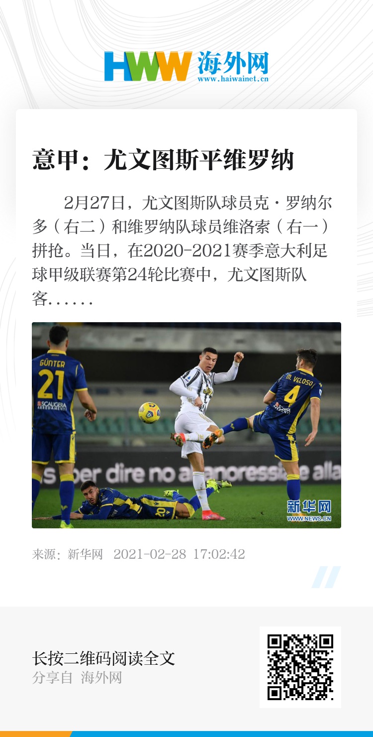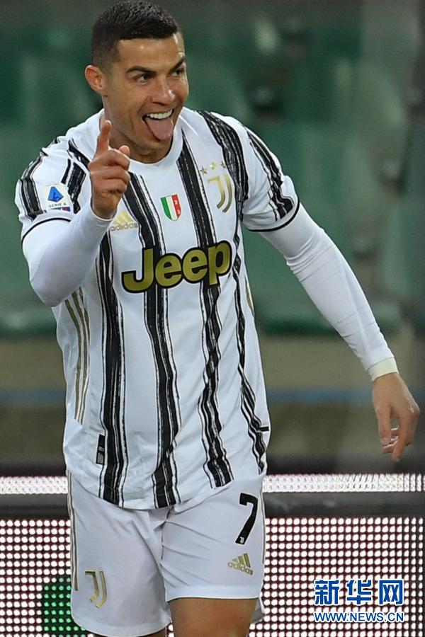 2月27日,尤文图斯队球员克·罗纳尔多庆祝进球。当日,在2020-2021赛季意大利足球甲级联赛第24轮比赛中,尤文图斯队客场以1比1战平维罗纳队。新华社/法新