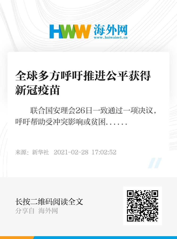 “如果无法公平获得疫苗,我们就无法战胜新冠疫情,世界也无法迅速从疫情中恢复,这显而易见。”谭德塞说,“共享新冠疫苗事实上是让生命和生计恢复正常的最好方式,合作符合所有国家的利益。”