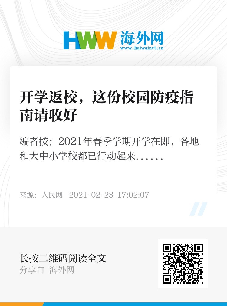 编者按:2021年春季学期开学在即,各地和大中小学校都已行动起来。随着人员流动加大,校园疫情防控的压力还会持续存在,不能有丝毫放松。如何调整状态和做好健康防护?以下几个方面要做到。