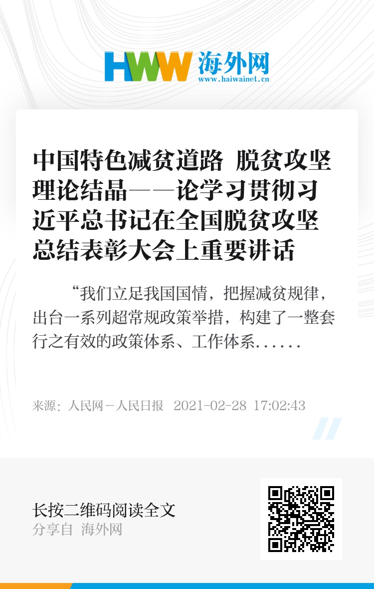 “我们立足我国国情,把握减贫规律,出台一系列超常规政策举措,构建了一整套行之有效的政策体系、工作体系、制度体系,走出了一条中国特色减贫道路,形成了中国特色反贫困理论。”在全国脱贫攻坚总结表彰大会上,习近平总书记深刻总结了我们在脱贫攻坚中形成的重要经验和认识,强调这些重要经验和认识是我国脱贫攻坚的理论结晶,是马克思主义反贫困理论中国化最新成果,必须长期坚持并不断发展。