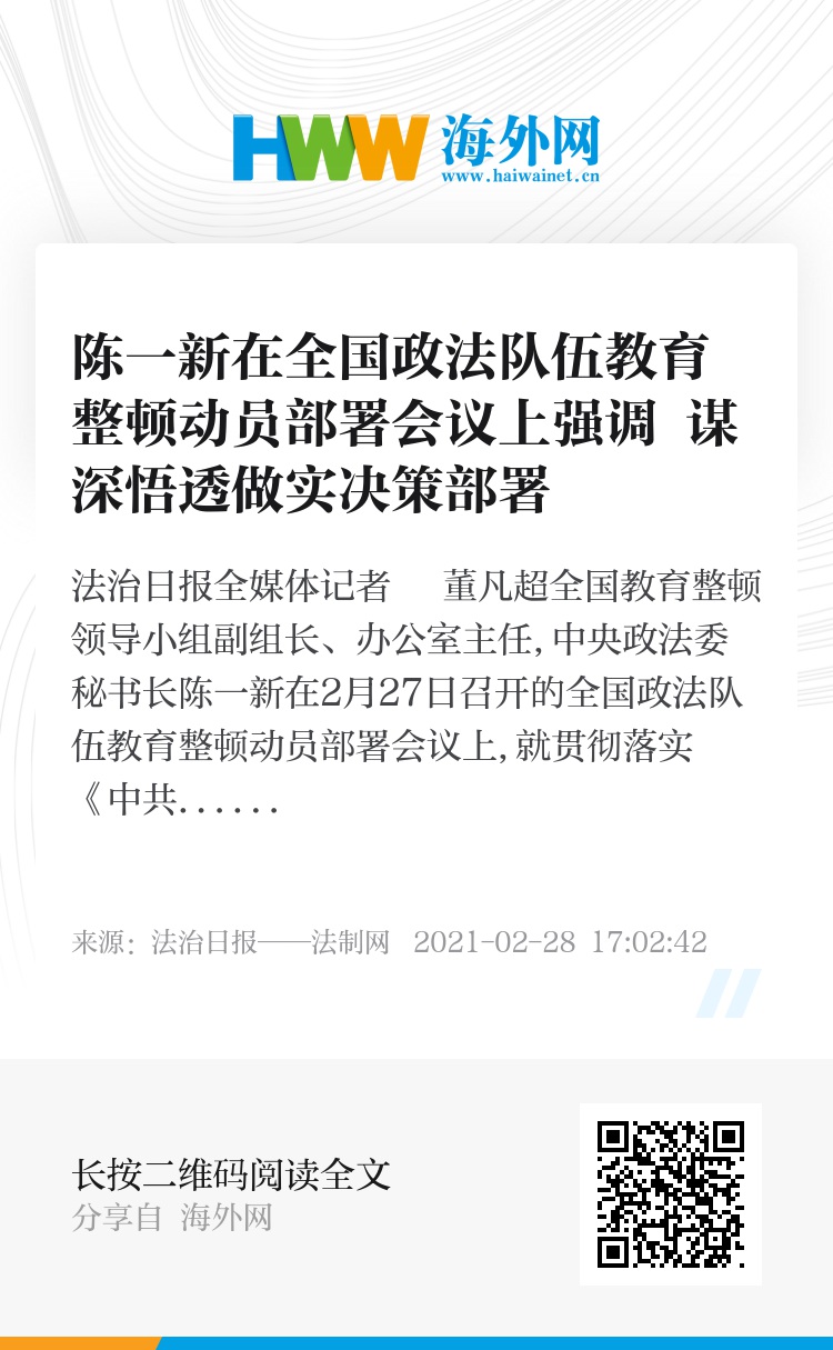 陈一新强调,《意见》和《方案》在总结前期试点经验的基础上,对教育整顿作出了统筹部署。要把教育整顿与开展党史学习教育有机结合起来,把党史学习教育作为教育整顿的重点内容来安排。要把教育整顿与激发政法队伍干事创业、履职担当结合起来,以政法队伍抓稳定、抓安全的业绩来检验教育整顿成效,为庆祝建党100周年和“十四五”开好局起好步营造安全稳定的社会环境。