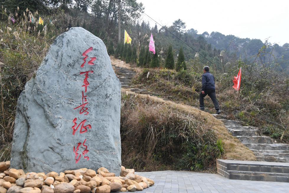 △这条名为“花界”的路如今还保留着当年红军走过时的样子(1月29日摄)。新华社记者周勉摄