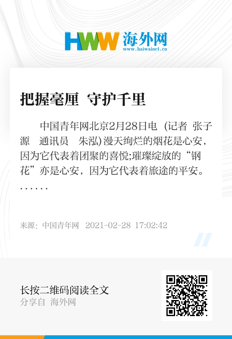 中国青年网北京2月28日电 (记者 张子源 通讯员 朱泓)漫天绚烂的烟花是心安,因为它代表着团聚的喜悦;璀璨绽放的“钢花”亦是心安,因为它代表着旅途的平安。那束砂轮与钢轨相接处飞舞的“钢花”,是对平安春运最简单的表达。