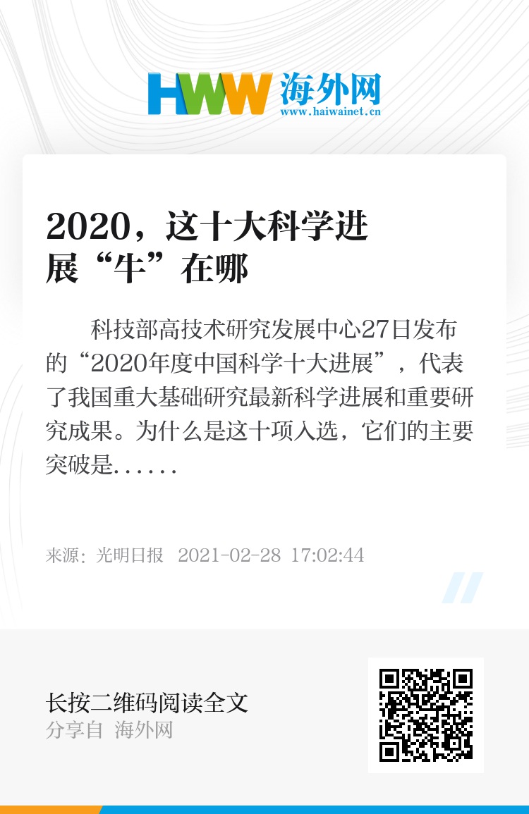 科技部高技术研究发展中心27日发布的“2020年度中国科学十大进展”,代表了我国重大基础研究最新科学进展和重要研究成果。为什么是这十项入选,它们的主要突破是什么?记者为你一一解析。