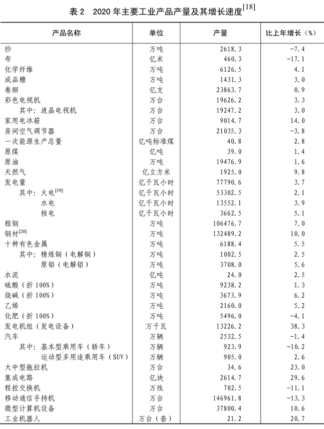 [18]2019年部分产品产量数据进行了核实调整,2020年产量增速按可比口径计算。