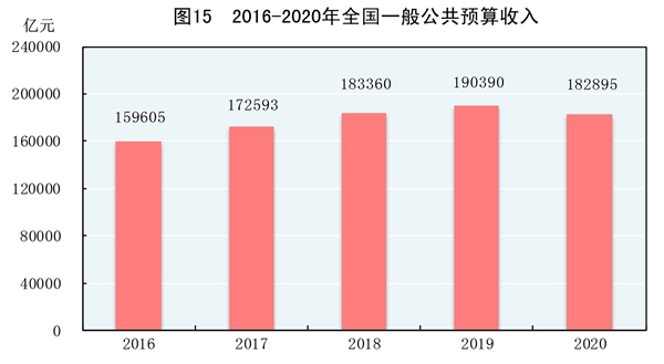 注:图中2016年至2019年数据为全国一般公共预算收入决算数,2020年为执行数。