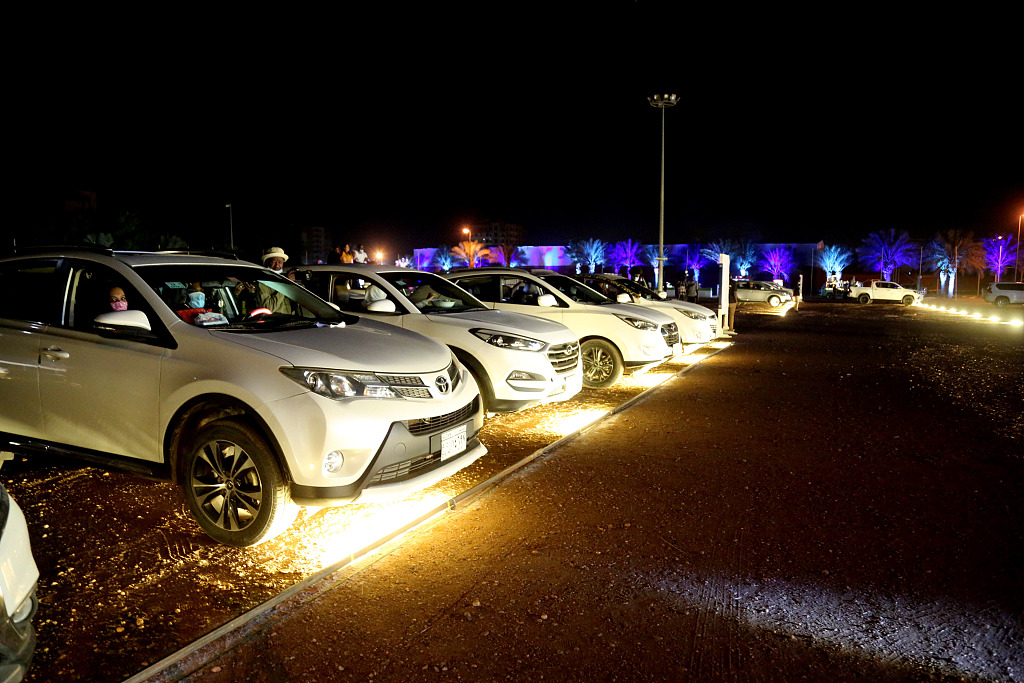 当地时间2021年2月26日,苏丹首都喀土穆举办欧洲电影节,民众在汽车影院观看电影。图源:视觉中国