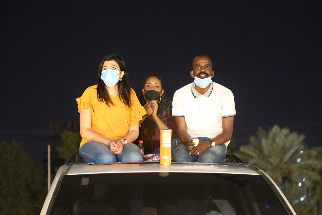 当地时间2021年2月26日,苏丹首都喀土穆举办欧洲电影节,民众在汽车影院观看电影。图源:视觉中国