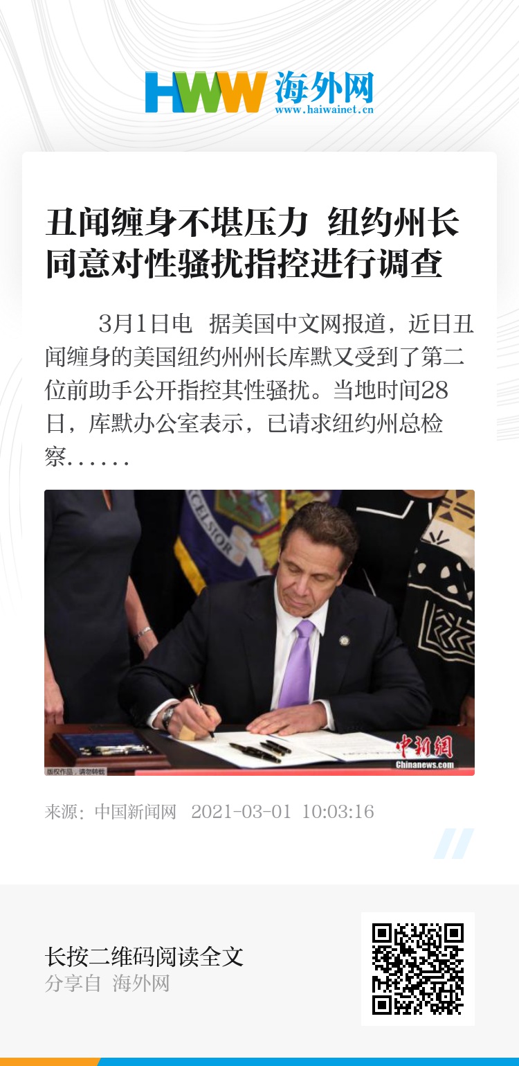 据报道,“州长办公室希望以无可非议的方式审查针对州长的性骚扰指控。”库默的特别律师兼高级顾问贝丝·加维28日在一份声明中说。