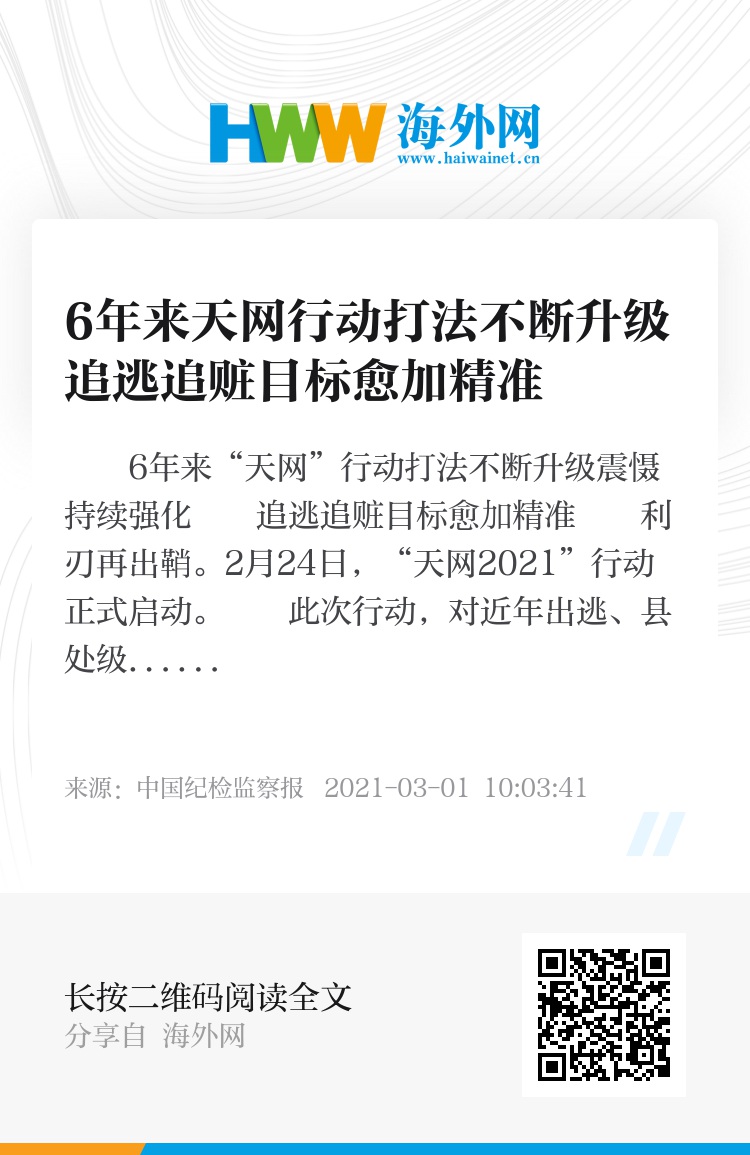 2015年3月,中央追逃办部署开展“天网”行动,要求集中时间、集中力量“抓捕一批腐败分子,清理一批违规证照,打击一批地下钱庄,追缴一批涉案资产,劝返一批外逃人员。”