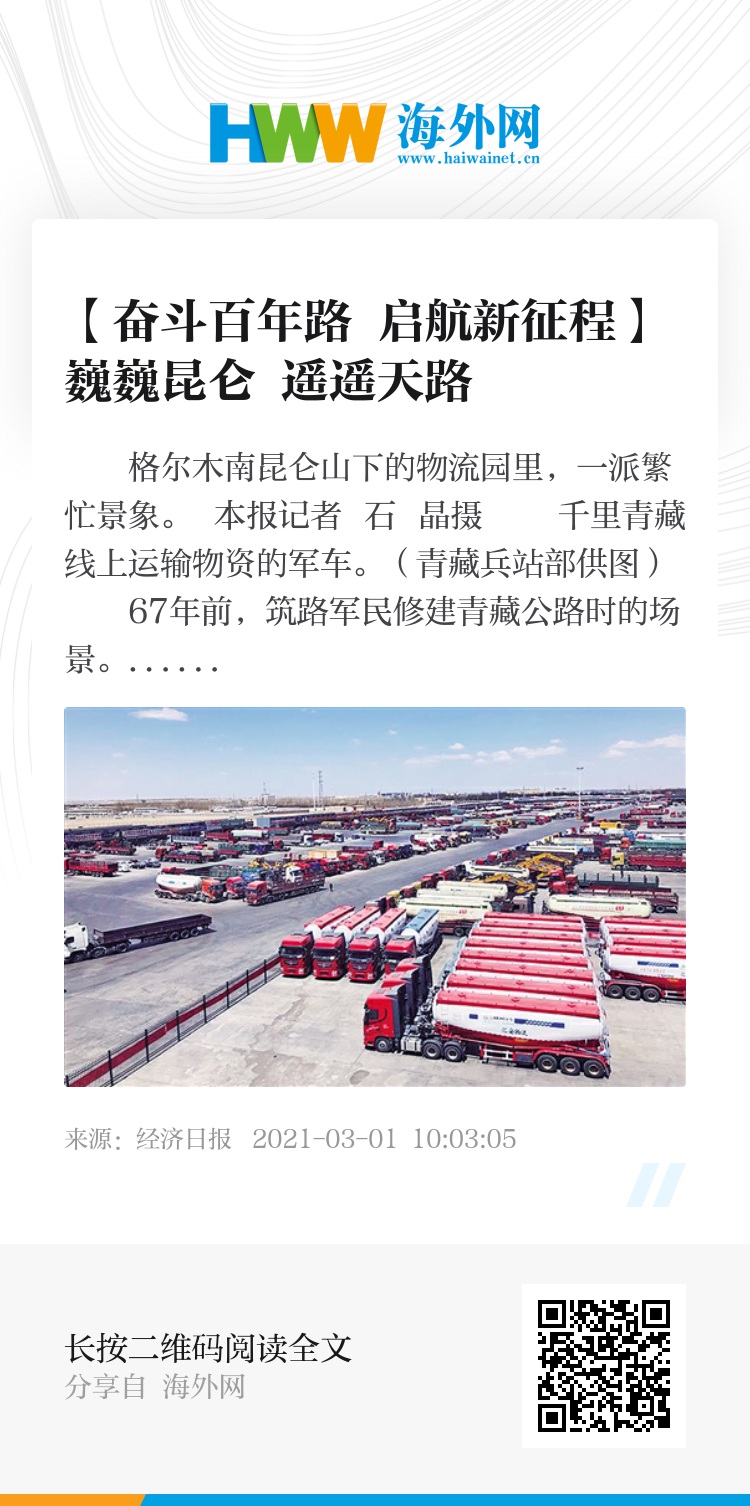如今,随着青藏铁路的西进、格库铁路开通、青藏公路改建、敦格公路开通、航空线路的搭建,格尔木已是人便其行,物畅其流。《国家物流枢纽布局和建设规划》将格尔木规划为陆港型国家物流枢纽承载城市,格尔木迎来了发展的又一个历史性机遇。(经济日报-中国经济网记者 马玉宏 石 晶)